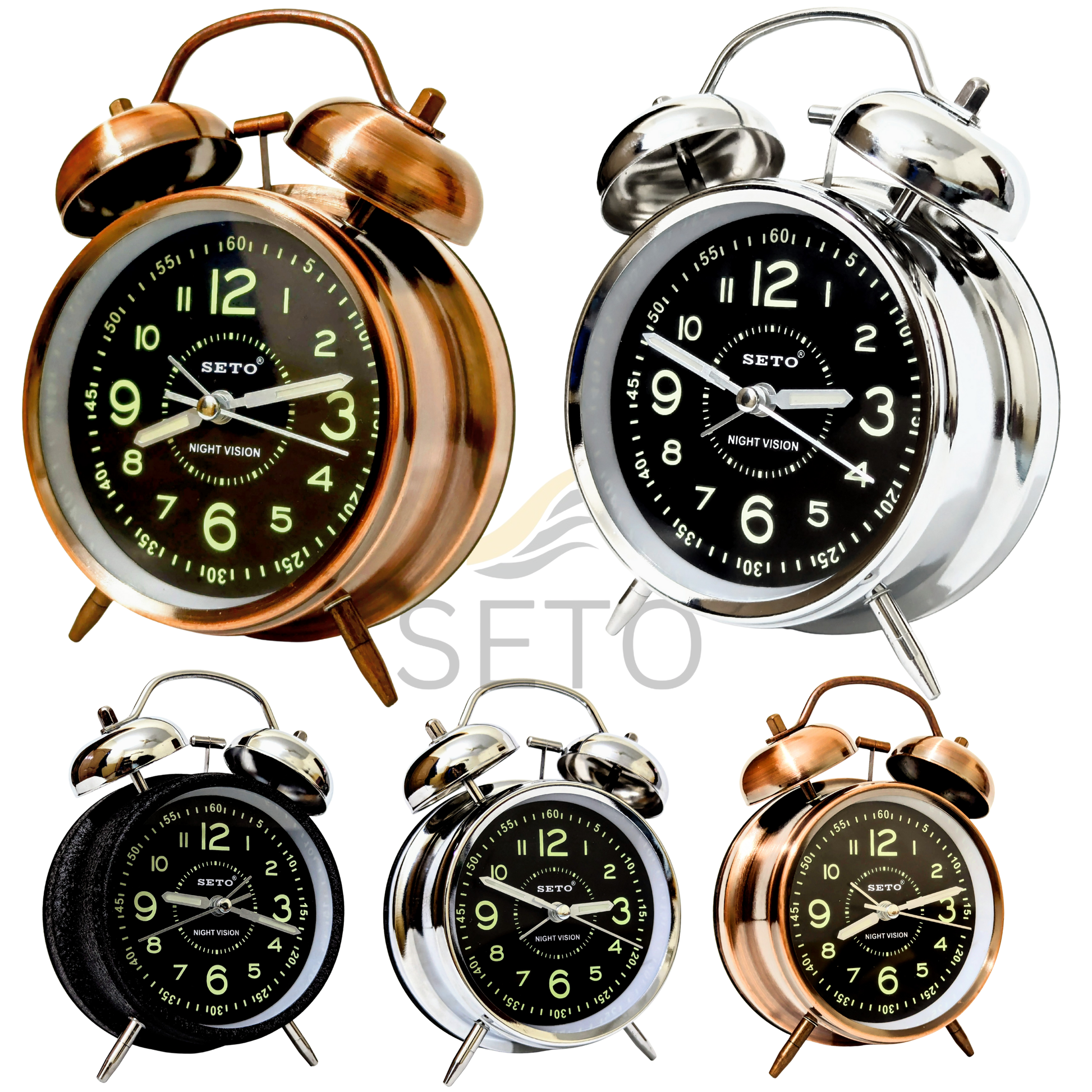 [SETO] Super Loud Twin Bell Alarm Clock with Night Light – Retro Silent Bedside Table Clock for Home & Bedroom